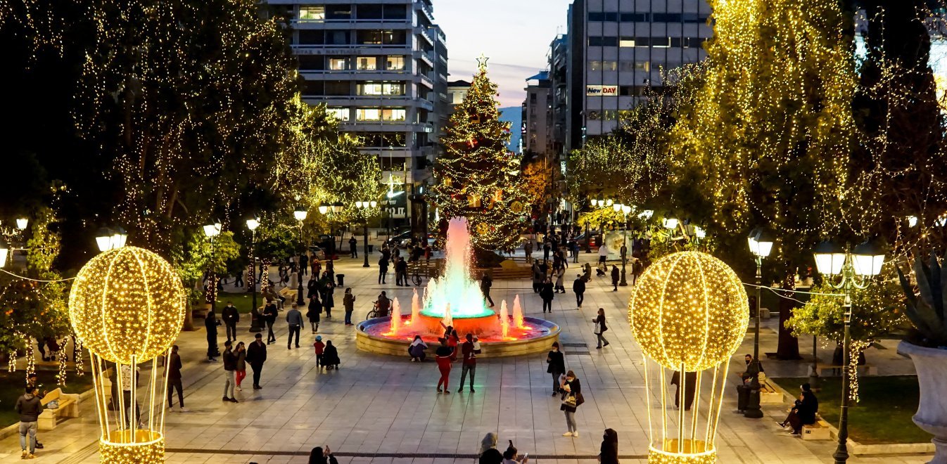 Xristoygenna 2020 H Stolismenh Plateia Syntagmatos Sta Xronia Toy Koronoioy Eikones Apo Thn Xristoygenniatikh A8hna Toy